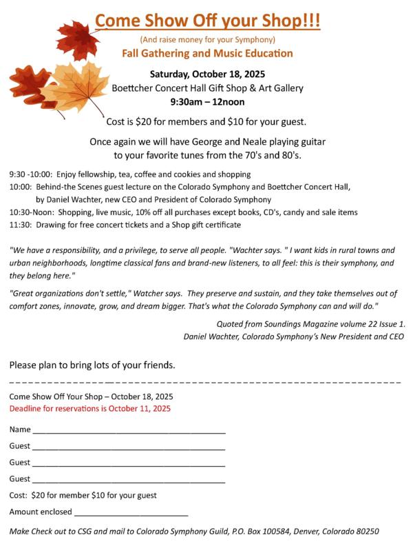 Come Show Off Your Shop October 18, 2025 9:30 am - 12:00 pm THIS EVENT IS FOR GUILD MEMBERS AND THEIR GUESTS Download the Flyer Registration "*" indicates required fields X/TwitterThis field is for validation purposes and should be left unchanged.Name* First Last Email* Phone*2025 Fall Shop Event Guild Member ReservationMember Reservations - $20 each2025 Fall Shop Event Guest ReservationGuest Reservations - $10 eachAttendee NamesPlease enter the names of any additional members and guests you are registering.Donation for 2025 Fall Shop EventOptional Donation Amount(You can make a donation whether or not you register for the event)Total Amount: CAPTCHAThe Register button will appear below upon selecting one or more reservations, or adding a donation amount. Clicking Register will forward you to Paypal where the purchase can be made with either your Paypal account OR a debit or credit card.